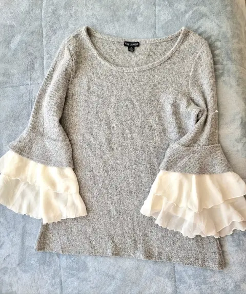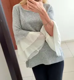 Suéter muy lindo clásico nina leonard. Talla M, se puede sin problemas para la talla L. La tela es calentita, muy suave. El diseño es super bello! Esta Nuevo