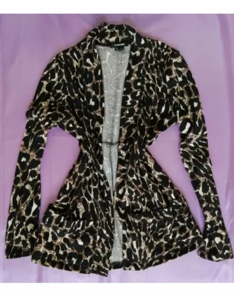 Sueter ligero animal print. Bonito sueter ligero en diseño animal print abierto, con dos bolsillos frontales. En la parte trasera tiene pequeños pliegues para estilizar la figura, se ve hermoso 🖤