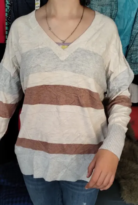 Suéter ligero rayas. Suéter ligero talla M/L colores beige, gris, café marca Loft ligeramente más largo de atrás