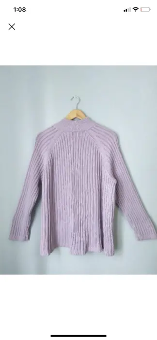 Bonito sueter lila, es pesado.Medidas aproximadas:De axila a axila 63 cm Largo 64 cm Manga desde el cuello 68 cm