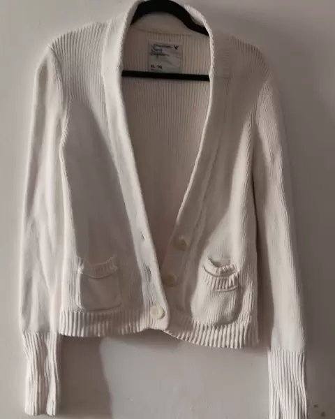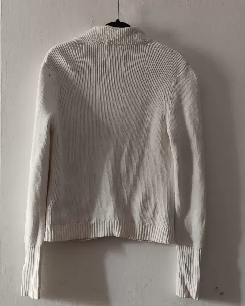 Suéter con cuello abierto tiene bolsas queda a un talla g mangas muy largas