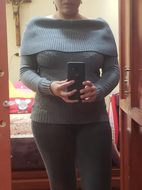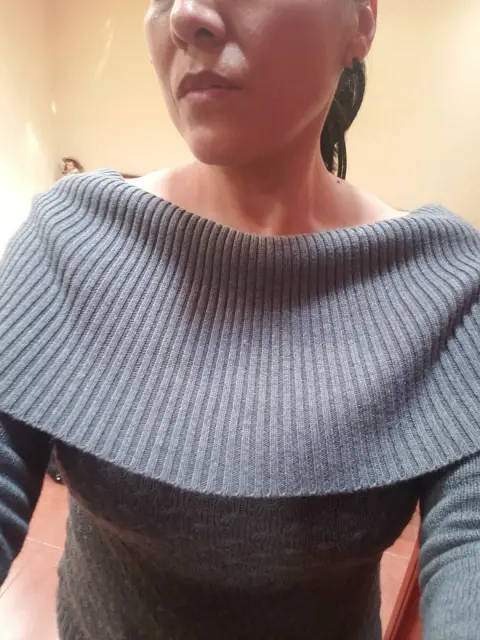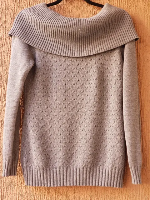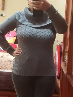 Bonito suéter de cuello alto para usar off shoulder o tipo bufanda, super lindo el tejido de enfrente es muy lindo, se ajusta bonito al cuerpo, el tejido es grueso pero no pesa y estorba*Talla G pero me queda bien y yo soy M*Detalles: Se le formaron bolitas abajo de la axila, pero no se notan*Calificación: 9*NO OFERTAR NI BLOQUEAR LA PRENDA SI NO ESTAS SEGURA DE LA COMPRA*GRACIAS POR TU PREFERENCIA*