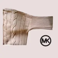 Suéter Michael Kors t L. Suéter Michael Kors t S/M queda mejor a L manga 3/4 cuello en V, placa metálica distintiva de la marca en cuello, 45cm hombros 65cm axilas. 68cm largo. Material 52% algodón 45% viscoso 3% angora. Aberturas laterales