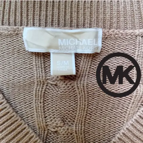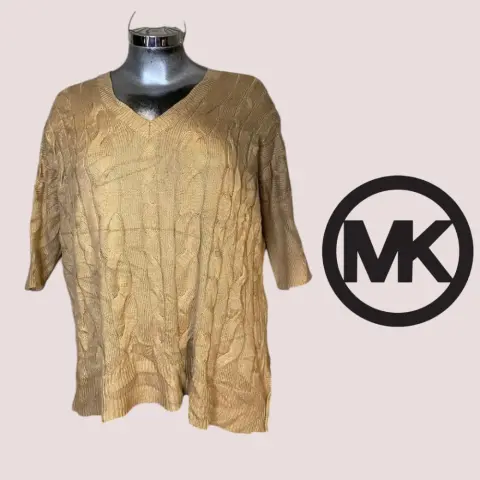 Suéter Michael Kors t S/M queda mejor a L manga 3/4 cuello en V, placa metálica distintiva de la marca en cuello, 45cm hombros 65cm axilas. 68cm largo. Material 52% algodón 45% viscoso 3% angora. Aberturas laterales