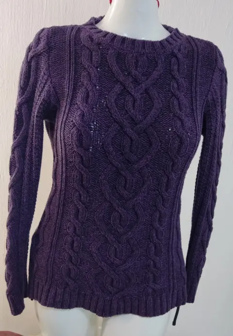 Lindo sueter jaspeado morado y negro ideal para tus diferentes outfits,en perfectas condiciones.. medidas:hombros-36cm./axila a axila-47cm./largo-65cm.