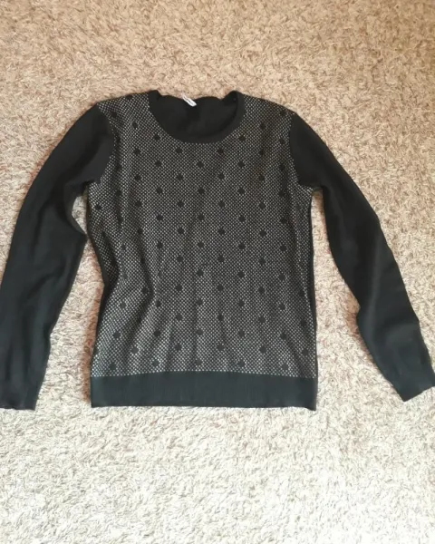 Sueter negro delgado con diseño de hoyitos al frente color beige y negro , para mujer, en perfectas condiciones. Talla mediana