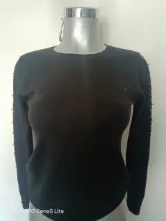 Suéter negro. Hermoso suéter negro Detalles de brillos en los costadosTalla G, pero queda bien desde m.Nuevo y super suave