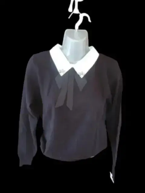 Sueter negro con moño TOP. Sueter negro con cuello blanco y moño negro esta suave no pica no es pesado. Ningun detalle. Super top para esta temporada.Si es tu primer compra recuerda agregar mi códigoSolo para compras mayores a $1000 pesos aplica. Recuerda que puedo armarte algún paquete.Te regalo $100 en tu primer compra en shoppiland.com con el siguiente código: kowiprofyAgw