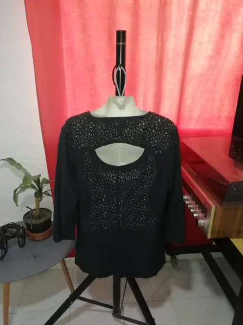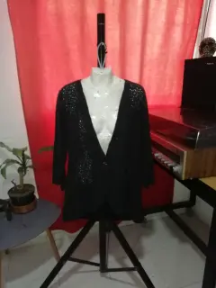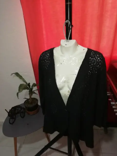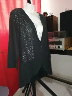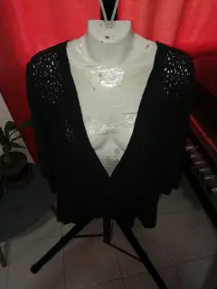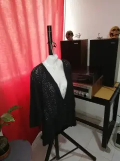 Suéter Negro Largo. Con cinta trasera y botón frontal, tejido de una manera bella y elegante color negro 🌚🖤🌑👁️🌑