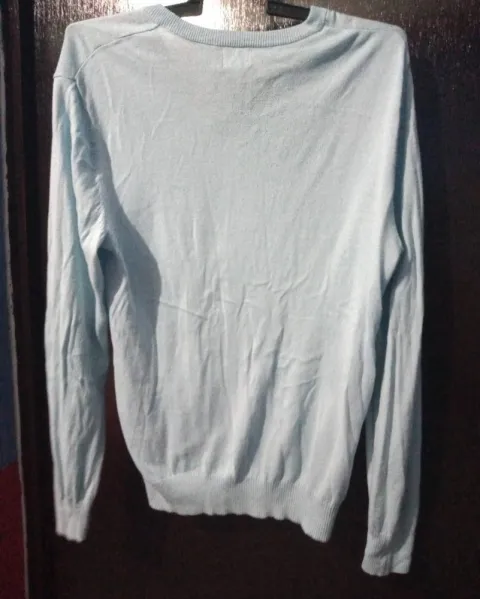 Color azul cielo. Talla M. De uso, en buen estado.Cuello en V.72 cm de largo.50 cm de hombro a hombro.