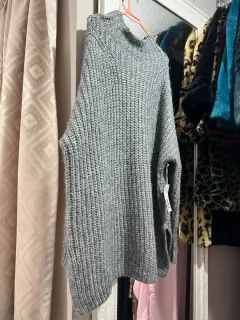 Hermosos suéter overzise gris de cuello alto y tejido muy calientito excelente para esta temporada de lluvias!! Totalmente nuevo con etiqueta !!!