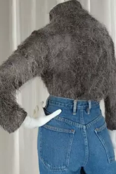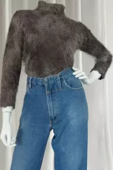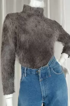 Suéter en cuello cisne color gris rata con textura de pelo súper en tendencia, puedes llevarlo con cualquier outfit y para estas épocas de frío Perfecto!