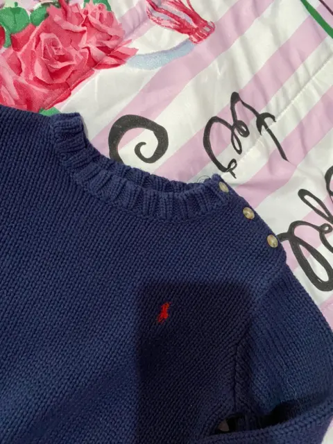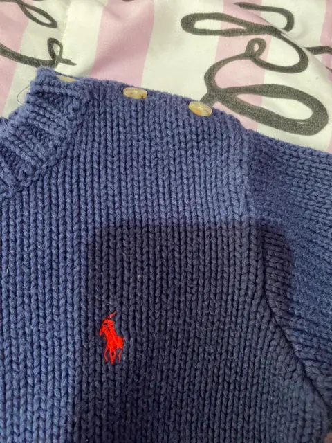 Hermoso suéter Ralph Lauren para niño, color azul marino, talla 4/5 años, se abrocha por un lado. Tejido