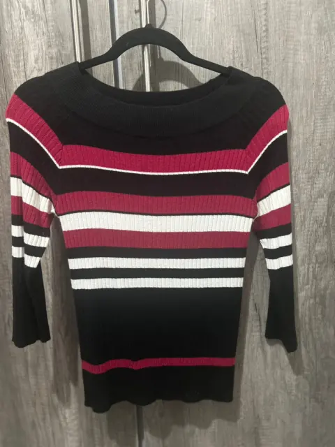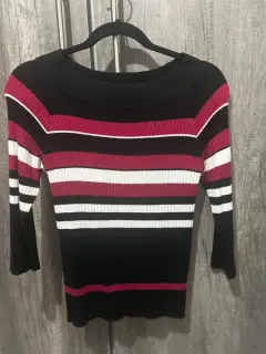 Precioso suéter rayado color negro, guinda y blanco, excelente estado, talla chica a mediana, tela strech