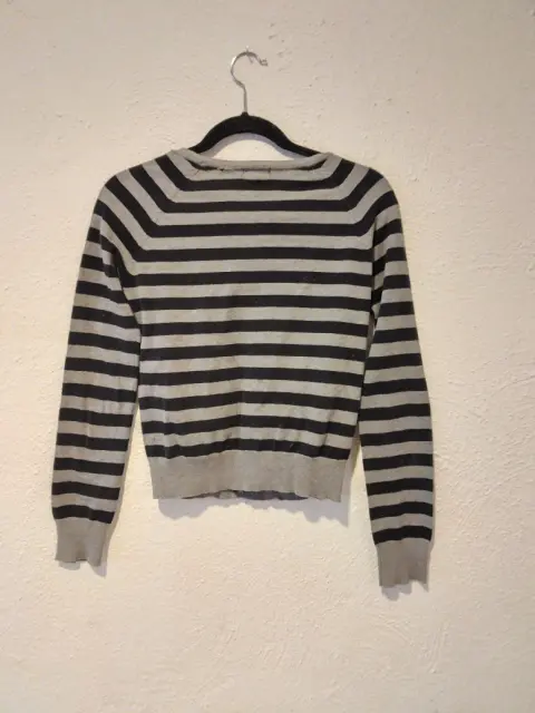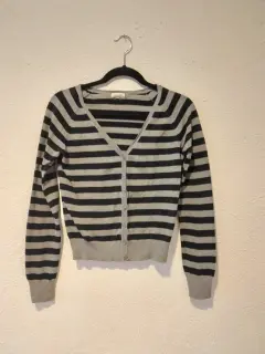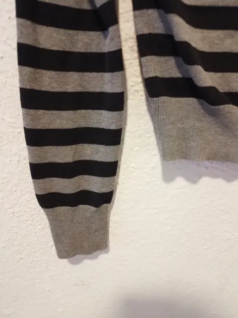 Lindo Suéter Rayado Gris con Negro, tela de playera, talla chica, sin detalles.
