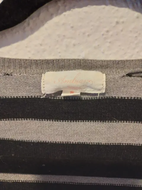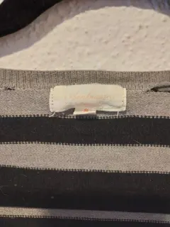 Suéter Rayado Gris con Negro. Lindo Suéter Rayado Gris con Negro, tela de playera, talla chica, sin detalles.