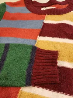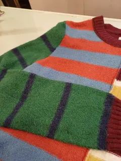 Hermoso suéter de rayitas multicolor. Es delgadito y muy hermoso, calientito y suavecito. Está divino 😻 tiene detalles de uso