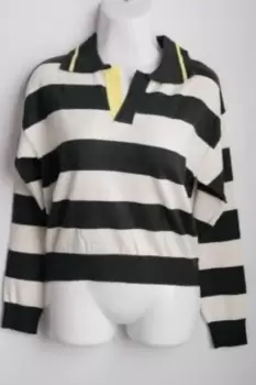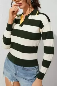 Sueter retro a rayas. Suave suéter retro tipo polo color con patrón de rayas verdes y detalles de líneas amarillas, hombros caídos. Viscosa con elástico ligero que permite ajustar a tu figura. NUEVO sin etiqueta.Medidas:Axila a axila: 47 cmLargo: 50 cmHombro: 47 cm