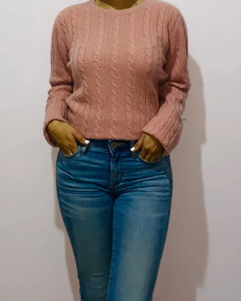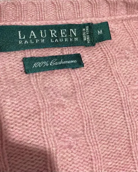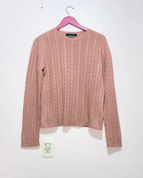 Suéter color rosa, marca Ralph Lauren. Queda a talla M o L. Es súper bonito. No tiene ningún detalle.