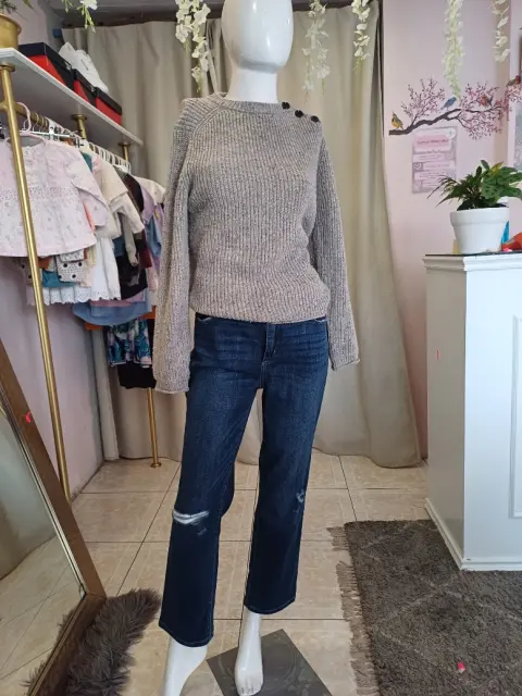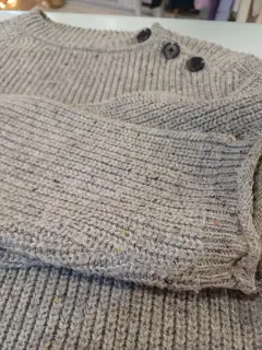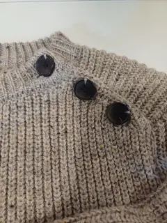 Hermoso suéter tejido color café. Es muy calientito. Tiene tres botones a un costado del cuello. Dice talla 10 pero queda perfecto hasta una talla chica de dama.Las medidas son hombros 38 CM, ax a ax 45 CM, largo 58 CM.