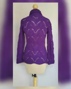 Suéter Tejido Punto c/Estructura Canale. Suéter en tejido de punto c/estructura efecto canale color VIOLETA, cuello collar básico y manga larga. UNITALLA (da a M/L). Dimensiones cms: 47 hombro, 46 axila, 39 cintura, 53 zona baja, 62 largo, 59 largo manga. 100% acrílico. Para lavado en casa.***NUEVO, SE LE CAYO LA ETIQUETA ESTANDO GUARDADO***