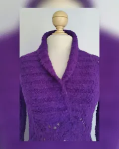 Suéter en tejido de punto c/estructura efecto canale color VIOLETA, cuello collar básico y manga larga. UNITALLA (da a M/L). Dimensiones cms: 47 hombro, 46 axila, 39 cintura, 53 zona baja, 62 largo, 59 largo manga. 100% acrílico. Para lavado en casa.***NUEVO, SE LE CAYO LA ETIQUETA ESTANDO GUARDADO***