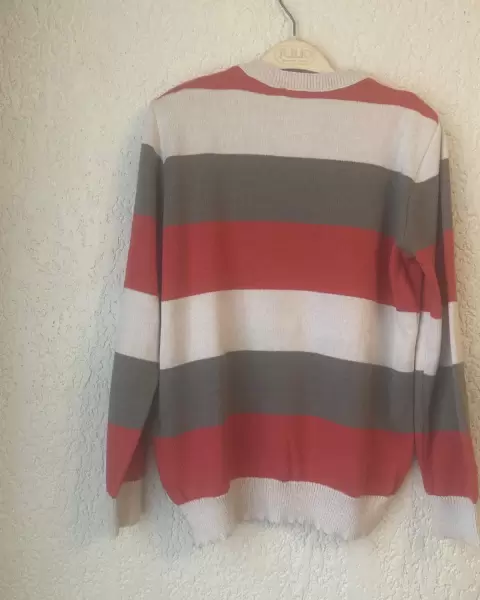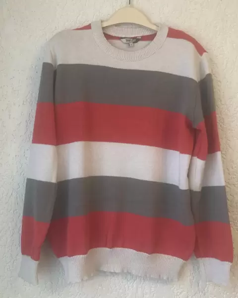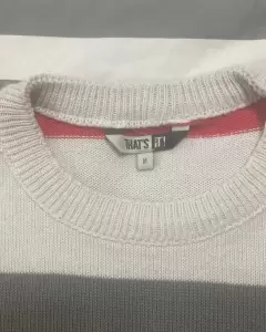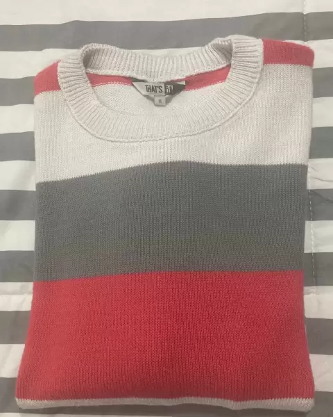 Suéter That´s it. Hermoso suéter de rayas color beige, gris y rosa, escote redondo, T/M bien puede quedar también a una talla chica, sin detalles.