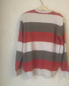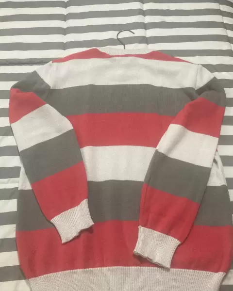Hermoso suéter de rayas color beige, gris y rosa, escote redondo, T/M bien puede quedar también a una talla chica, sin detalles.