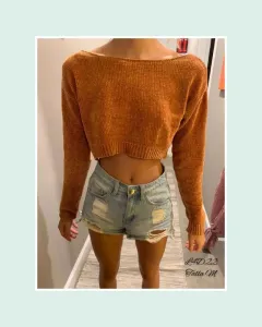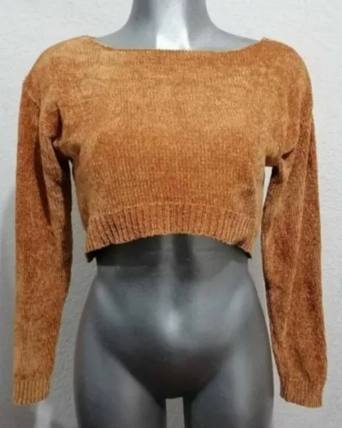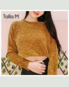 Suetersito top color mostaza tela suavesita, calientita, super bonito, cómodo, la tela estira. Puedes usar solo o abajo una playerita. Medidas: largo 37cm, contorno inferior(cintura) 90cm,largo Manga 56cm
