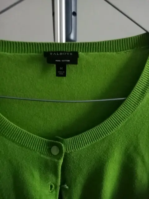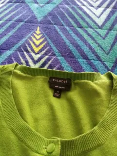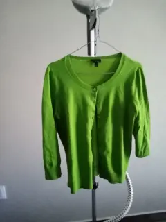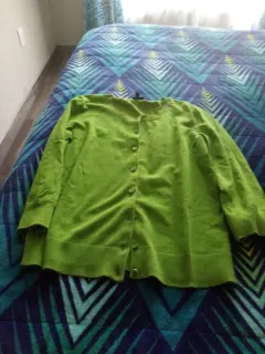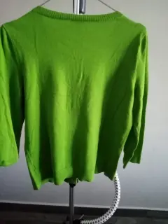 SUETER VERDE LIMON CORTO. Es verde, cuello redondo, tiene botones color verde, manga 3/4, color bien cuidado