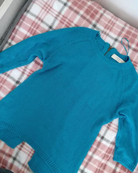 Suéter Zara color azul. Suéter con cierre doble en la.espalda, la talla dice L pero igual le va perfecto a un MMuy lindo y coqueto