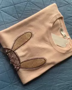 Sueters ligero en color rosa con conejo al frente en brillos, talla unitalla