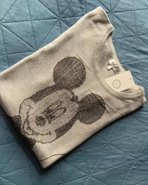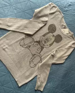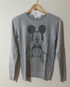 Suéter ligero en color gris con estampado en brillos de mickey en unitalla