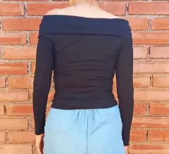 Hermoso sweater se puede usar sin hombros o a medio hombro, muy bonito, se ajusta al cuerpo, ideal para unos jeans, o una falda con unos tacones o botas.
