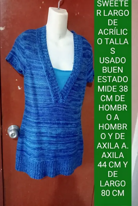 SWEETER TALLA S LARGO MANGA CORTA USADO BUEN ESTADO MIDE 38 CM DE HOMBRO A HOMBRO Y 44CM DE AXILA A AXILA Y 88 CM DE LARGO