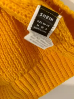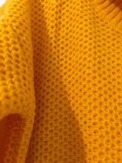 Sweter amarillo de punto . Cuello doble , talla M . Al tacto es suave .