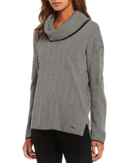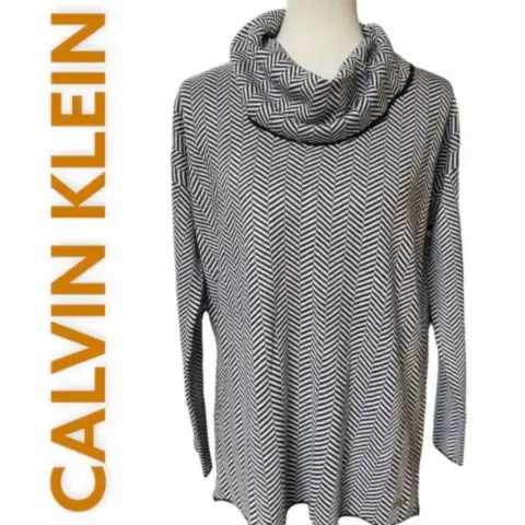 Suéter Calvin KleinTipo túnicaQueda a desde talla S a talla LCuello alto como bufanda.Patrón ChevronNuevo, falta 🏷️