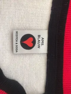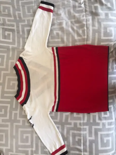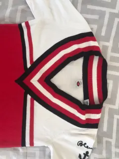 Hermoso sweter manga 3/4 blanco , azul y rojo franjas cuello en V de punto deportivo tipo Polo , tipo tennis talla xS queda perfecto S , marca Áms Blaws