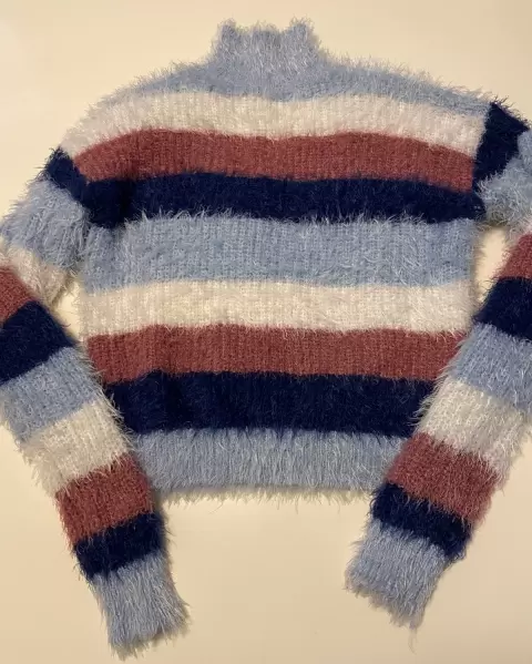 Sweter en rayas de colores, tela muy suavecita y textura de pelitos, súper bonito, estira, así que le va bien desde una talla S a M.