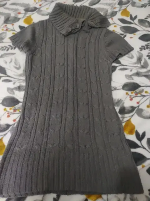 Vestido tipo suéter,cuello ruso con botones ,estira calientito de estambre gris Oxford