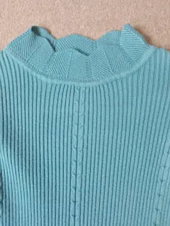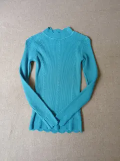 Yuna suéter cuello de tortuga y manga larga, estilo vintage color azul turquesa unitalla ( Small- medium).Nuevo sin etiquetas.Materiales: 65% algodón y 35% poliéster.Medidas: 62 cm de largo, 75 cm de ancho espalda-pecho, 56 cm de ancho en cintura, 58 cm de largo de mangas. Expandible.