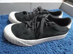 Hermosos tenis Adidas gamuza, edición everyn.Talla 5.5, pero ojo, van más a un 6, están amplios.Están en perfecto estado, sin detalle. Más que la gamuza un poco descolorida, no rotos, ni amarillos.