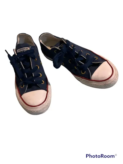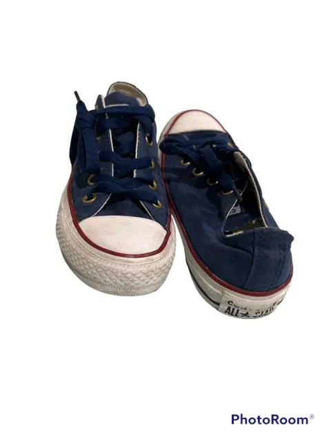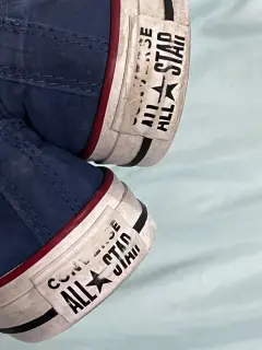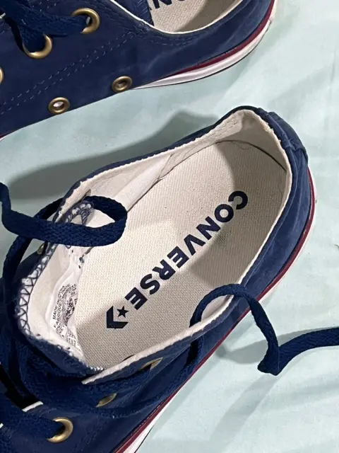 Converse azules talla 22cms. Tela estilo gamuza, muy bonita, con pocos detalles más que nada en tobillos, plantillas intactas, agujetas originales.