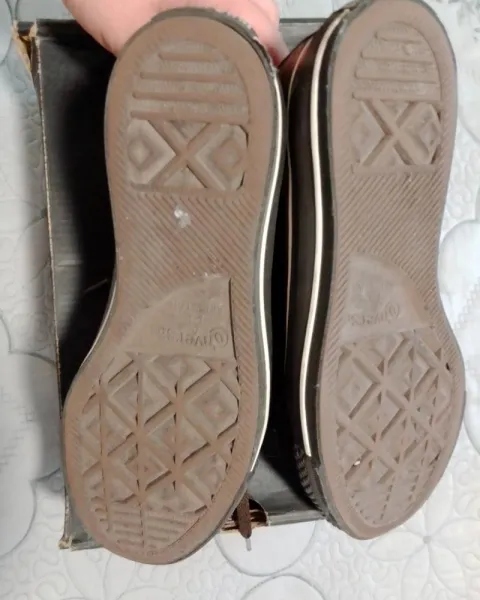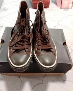 Te regalo playera nueva (sin etiqueta) en la compra de los tenis!! Converse hermosos de bota, piel color cafe, grabados en toda la piel, unisex, talla USA mujer 8 y 6 hombre. Tienen unas cuantas puestas (4 o 5). Los trajeron de Minnesota, tienen un ligero detalle por falta de uso, tiene un puntito despegado de la orilla. Anexo foto del regalito si te animas a comprarlos!!!