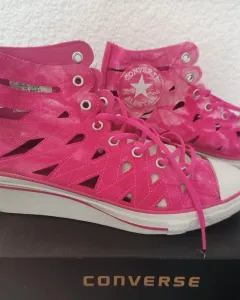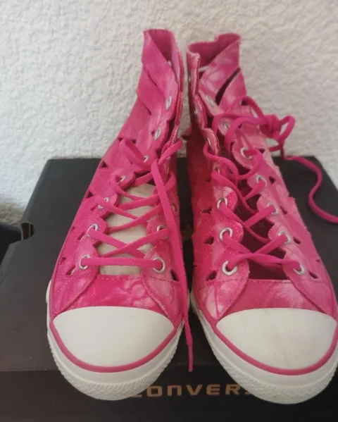 Hermosos Converse de edición limitada efecto tie fue cut out. En la última foto pongo la referencia de como se ve el modelo puesto.