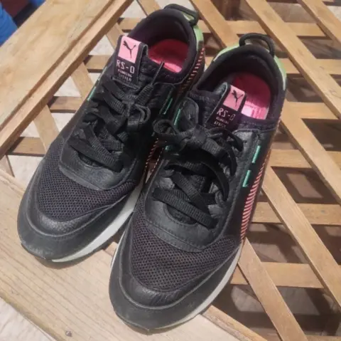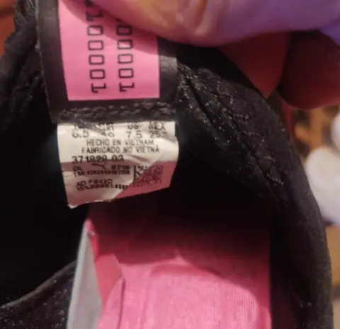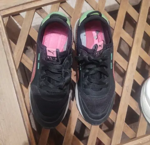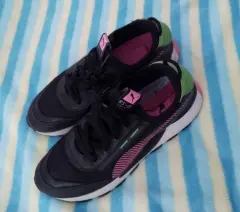 Tenis negros con detalle rosas y verde. Talla 25.5. muy cómodos. Usados pero en muy buen estado.