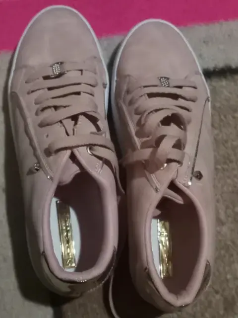 Tenis color rosa pastel con adornos dorados y brillos número 6 con cómodos y bonitos