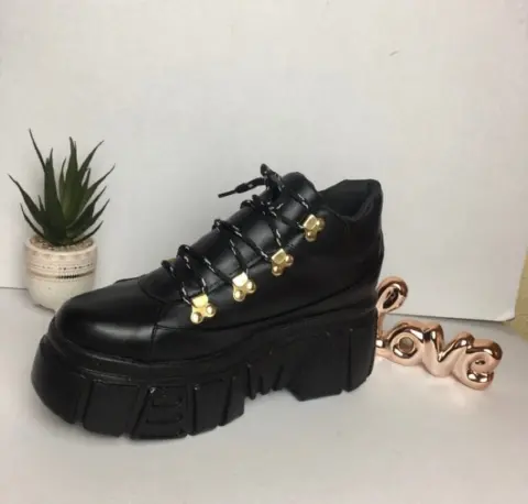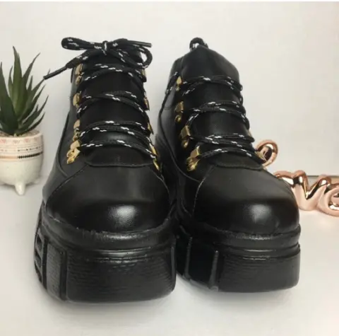 Sneakers plataforma muy chic, suela de goma, súper ligeros, con sujeta cintas dorado. Envío sábados tal vez antes. No hago intercambios ni apartados.