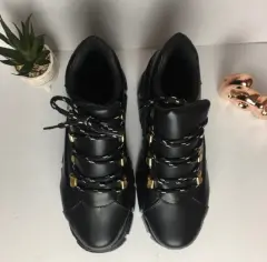 Sneakers plataforma negro. Sneakers plataforma muy chic, suela de goma, súper ligeros, con sujeta cintas dorado. Envío sábados tal vez antes. No hago intercambios ni apartados.