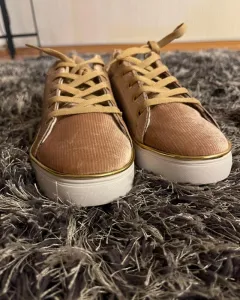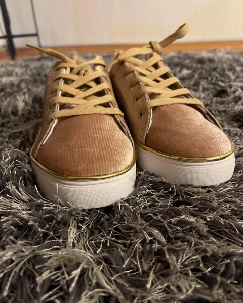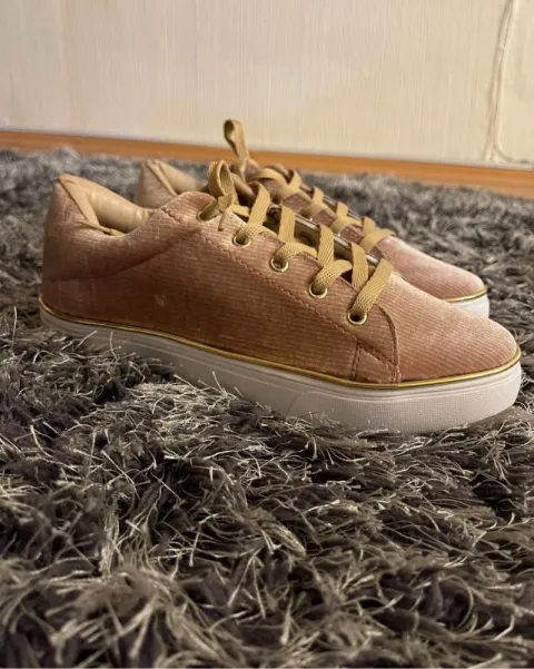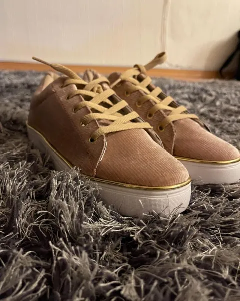 Tenis. El material es tipo pana, el color eso rosa gold.Muy cómodos y combinan con todo